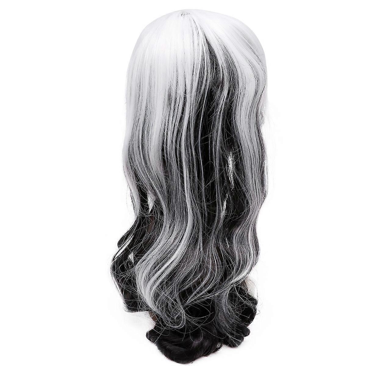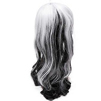 Halloween Women Long Curly Half Black Half White Wig Cosplay Party Wig