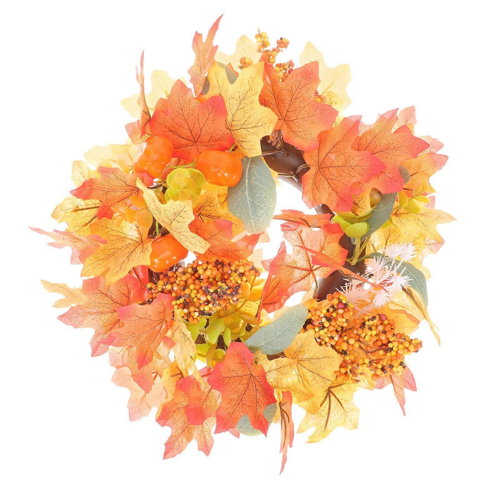 Halloween Candle Holder Imitation Pumpkin Maple Leaf Wreath Ornament Wreath