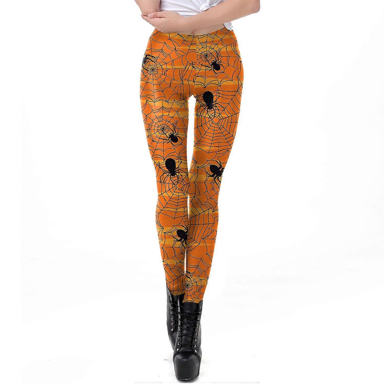 Halloween Spider Web Print Leggings Stretchy Slim Fit Pants for Costume Parties & Casual Wear