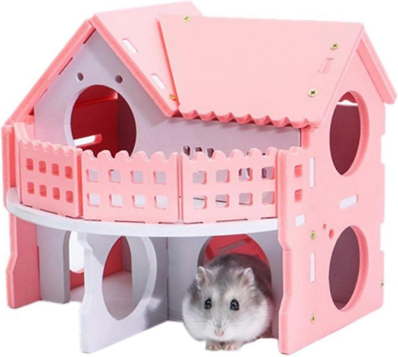 Hamster House: Double Layer Design Wooden Animal Hideout, Perfect For Guinea Pigs, Gerbils, And More, Easy To Assemble With Bamboo Accessories,