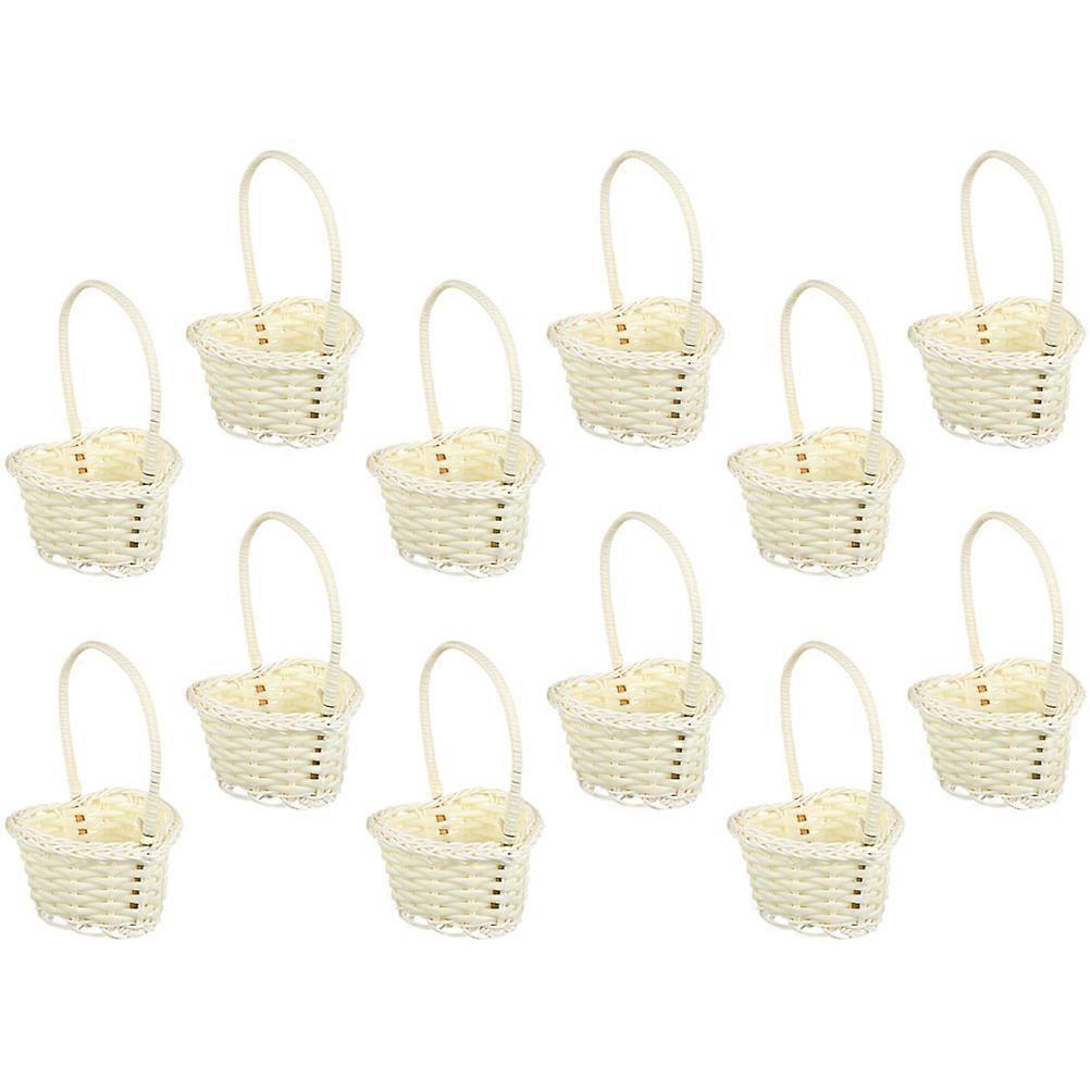 Handheld Flower Basket Elegant Wicker Storage Wedding Use Beige 14x9cm 12Pack