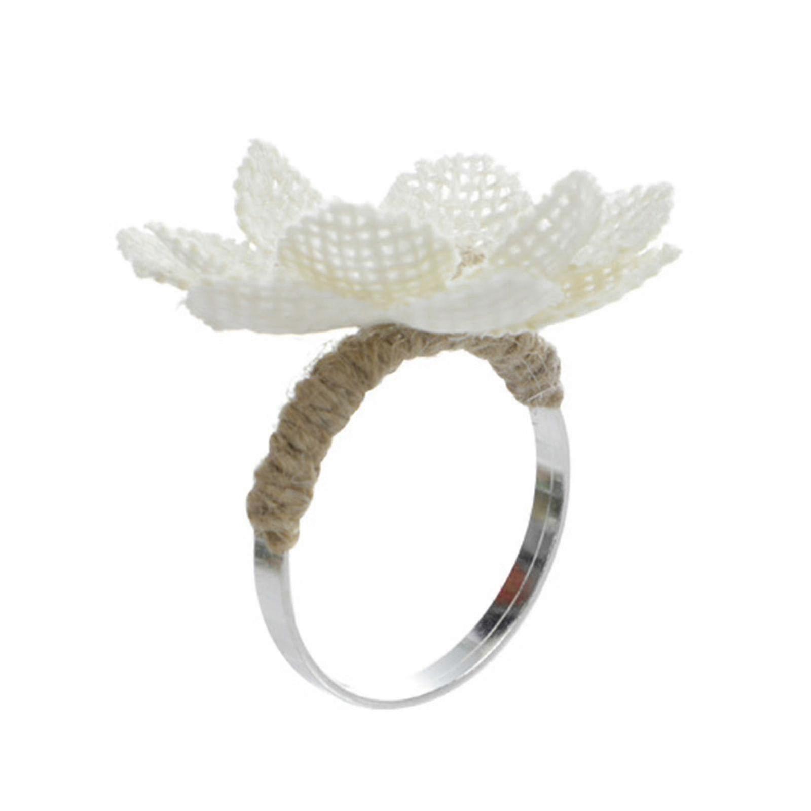Handmade Vintage Hemp Rope Flower Napkin Rings - Rustic Napkin Holder Buckles for Dining Table Decorations & Serviette Settings