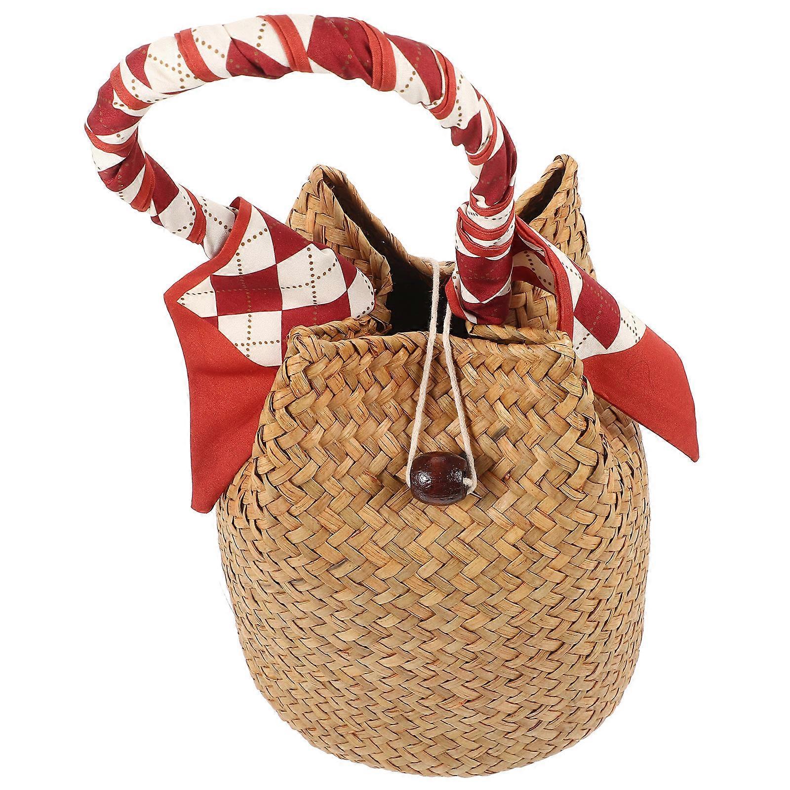 Handwoven Hand Bag Portable Beach Woven Tote Bag Woven Shopping Bag Rustic Woven Tote Bag