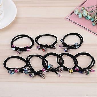 Dobbeltlags Kvinder Knude Hårbånd Reb Ring Rhinestone Elastisk Hestehale Holder