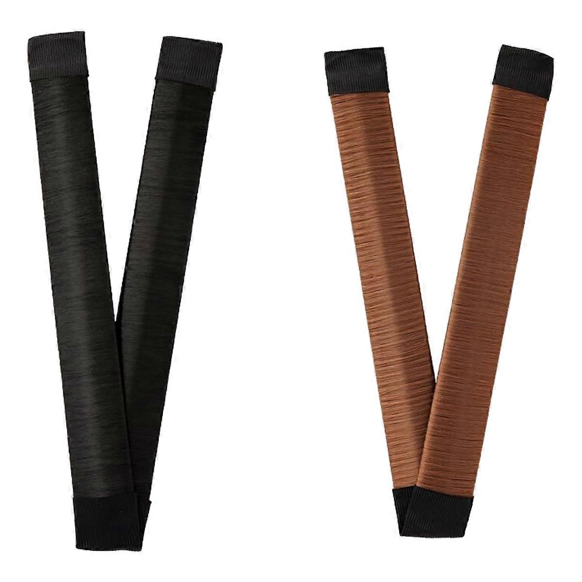 Hair Bun Maker, French Magic Twist Hair Fold Wrap Snap Band Twist Bun Shaper(2pcs, Brown, Dark Brown)