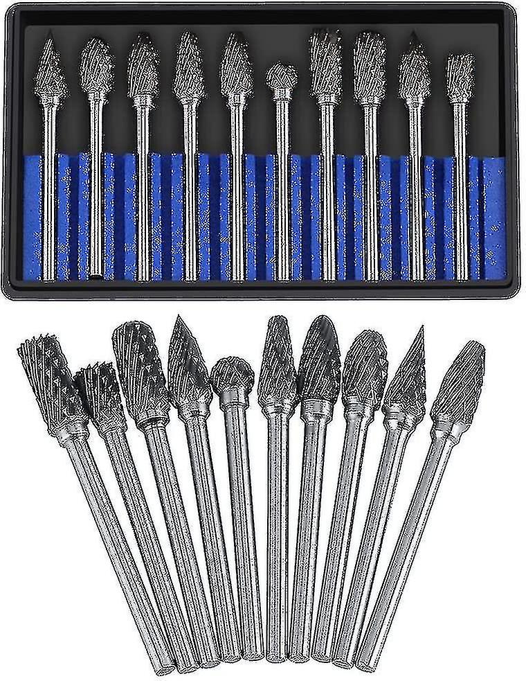 Carbide Cutter Set Rotary Files Tungsten Steel 10pcs Diameter Head Cutter For 3mm End Mill Shank 6mm The Drill Carving Cutting Metal Polishing Engravi