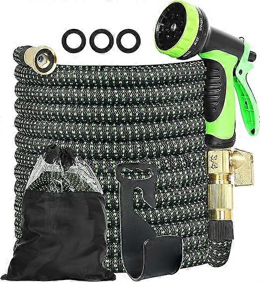 Genuine Brass Connections: Our connectors are crafted from pure brass, not cheap copper plating which is prone to cracking and leaking, offering enhanced durability at an affordable price.Tangle-Free Durability: Designed to be tangle-free, our garden hose kit prevents kinks and twists that obstruct water flow. Made from high-quality materials, it stands the test of time.Auto-Expand/Contract: After use, the hose automatically reverts to its original length, making storage and tidying up effortless.3750D Super Strong Polyester Fiber: Reinforced with 3750D polyester fiber, our hose remains robust, even when driven over by a car, ensuring no leaks.Lightweight Portability: Our hose kit is incredibly lightweight, making it easy to carry around the garden or move to different locations. Its compact design saves storage space when not in use.Versatile 10-Function Nozzle: The ergonomic handle is equipped with an anti-slip rubber pad for easy operation. With 10 spray patterns, you can adjust the water flow to suit various tasks, such as house, car, floor, yard cleaning, and garden watering.