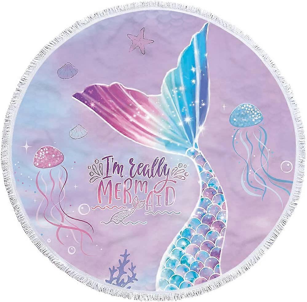 Mermaid Beach Towels for Summer ,Microfiber Oversized Round Towels Microfiber Beach Blankets with Fringe Tassel Ultra Soft Super Water Absorbent Multi