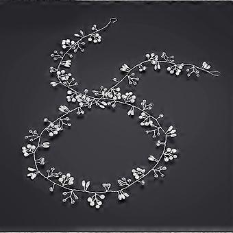 50cm brude bryllup hår tilbehør, hår perle krystal pandebånd, sølv brude pandebånd tiara