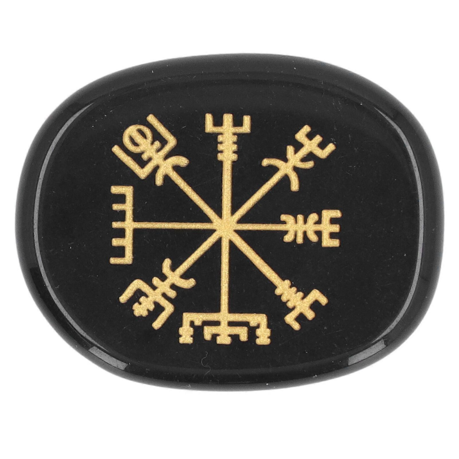 Healing Crystal Stone Engraved Nordic Vikings Symbol Stones Meditation Healing Flat Oval Symbol Stones Black