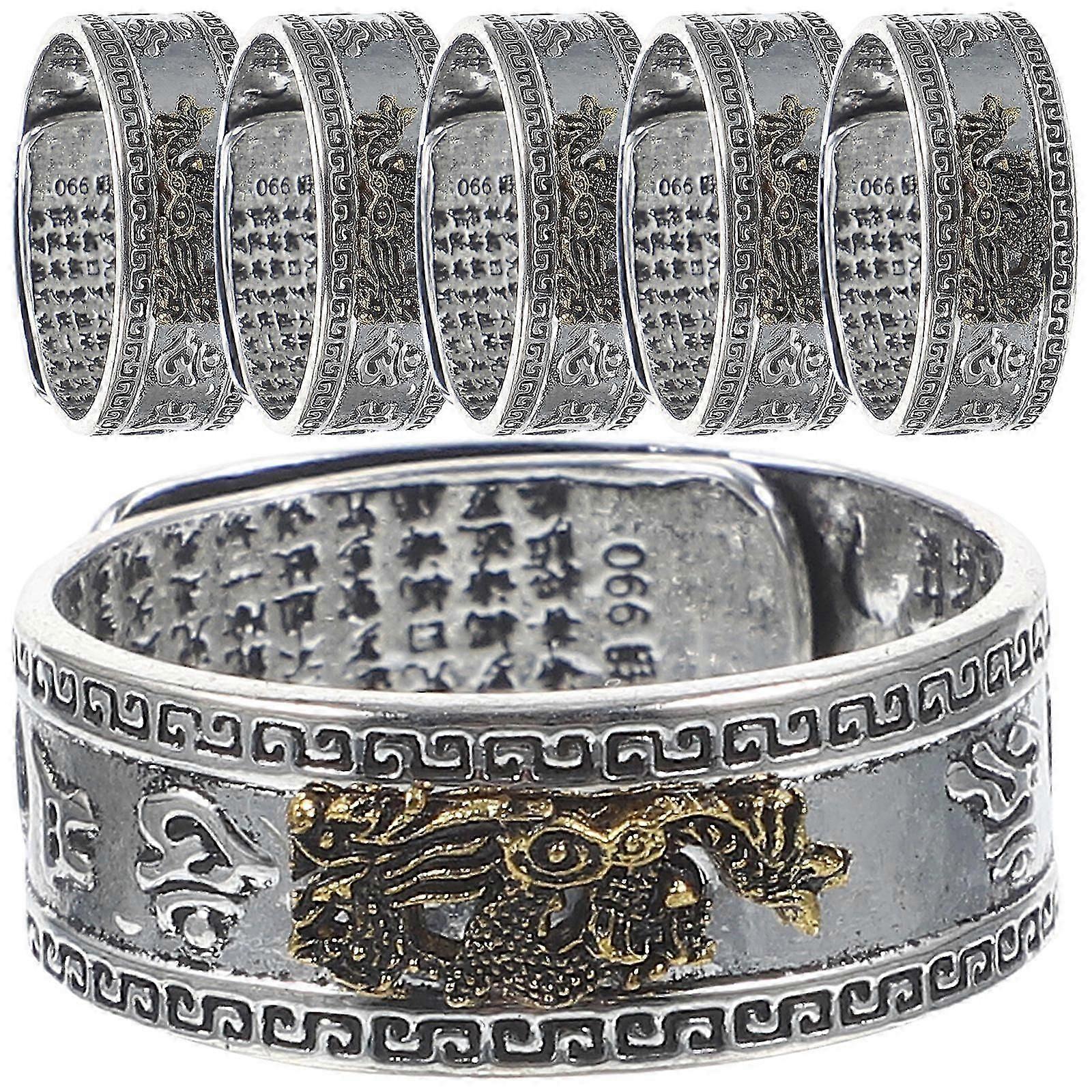 Good Luck Charm Ring Creative Design Stainless Steel Rings for Men Protection 6Set