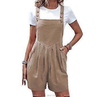 Dame Afslappet Ærmeløs Sparkedragt med Justerbare Stropper & Lommer - Løs Sommer Buksedragt Shorts i Kakifarvet XXXL