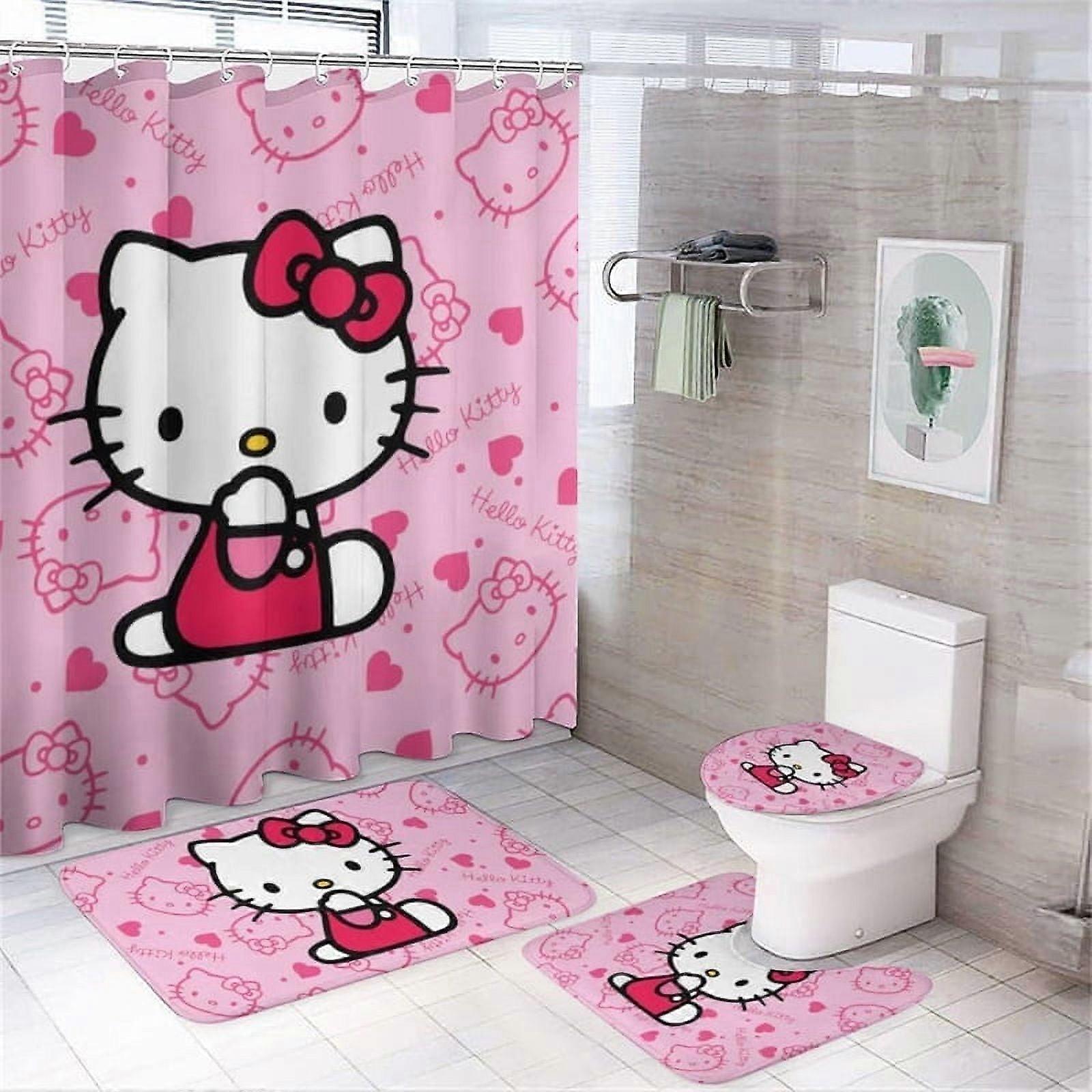 Hello Kitty Shower Curtain Set Bathroom Accessories with Anti-Slip Carpet Toilet Seat Cover Bathroom Mat Waterproof Set