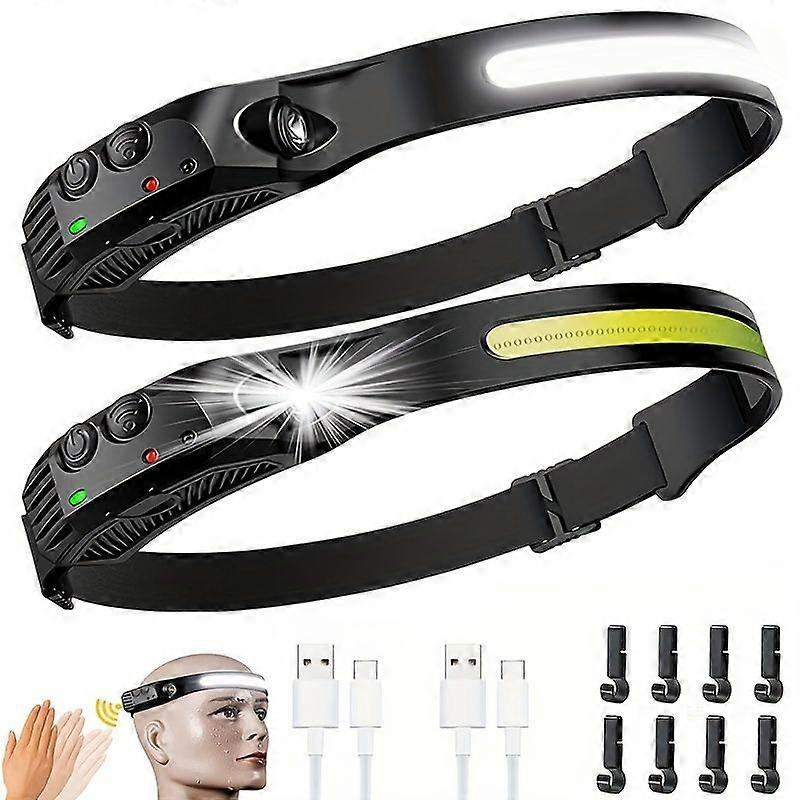 High Power LED Headlamp with Rechargeable Sensor XPE+COB 5 Modes for Camping Fishing and Outdoor Activities