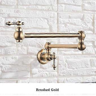 High qualityBrushed Gold Kitchen Faucet Wall Mount Bathroom Basin Faucet Cold Water Washing Tap Rotate Folding Spout Brass Vanity Sink Crane