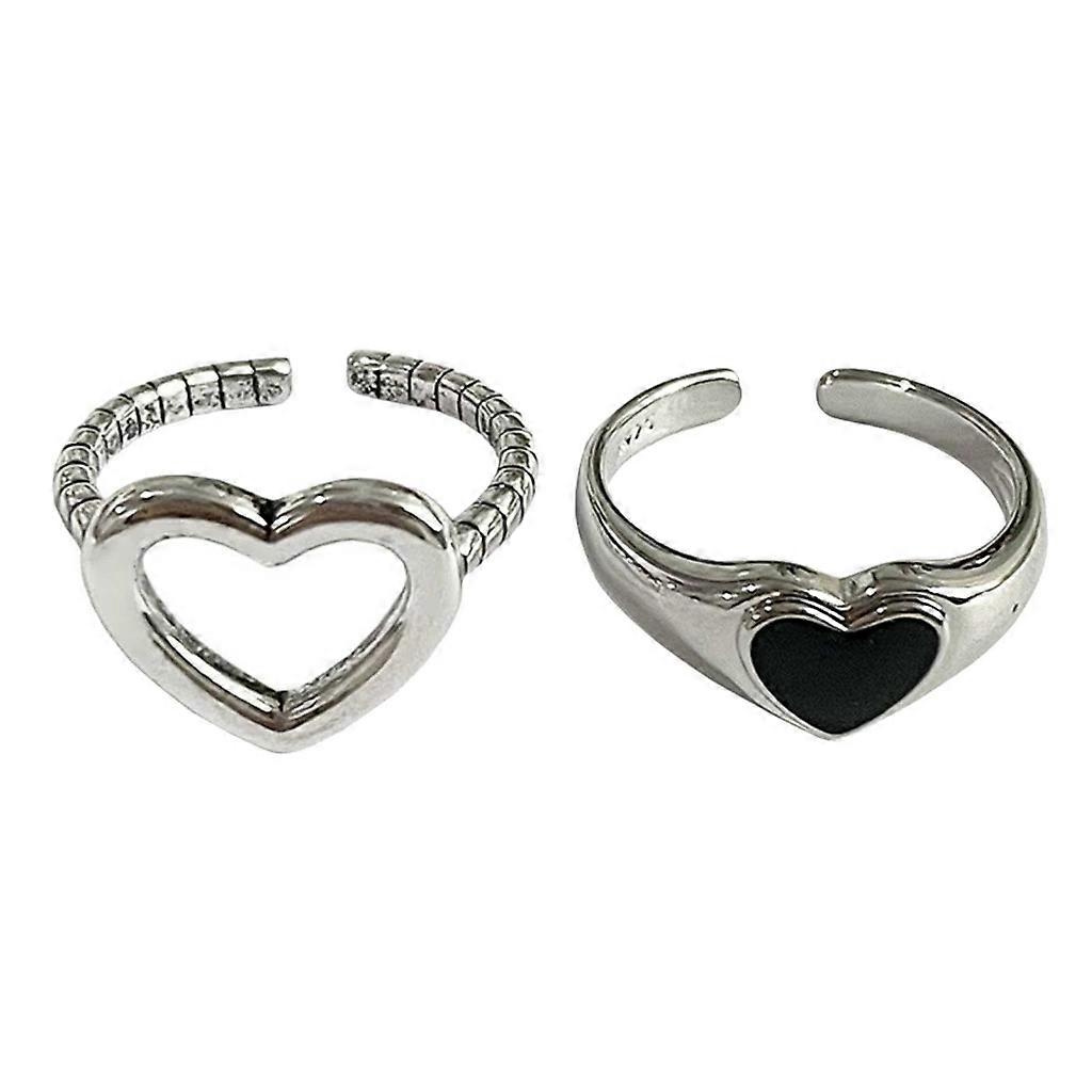 Hollow Love Ring Adjustable Opening Fashion Black Drop Oil Ring Girl Jewelry