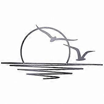 Sunrise Metal Wall Art with Seagulls, Coastal Wall Decor for Living Room