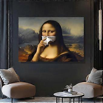 Unik gave Humoristisk Mona Lisa med en næse på lærred Træramme Vægkunst Maleri til badeværelsesindretning Humor Poster Tryk 15,7x23,6in