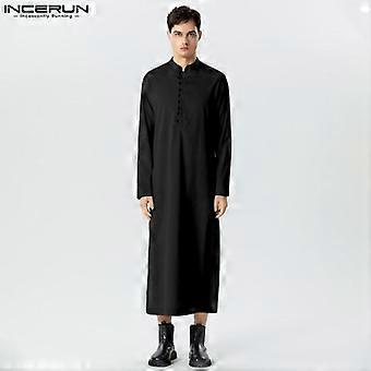 INCERUN Men Stand Collar Long Sleeve Button Up Abaya Kaftan Long Robes