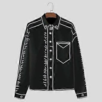 INCERUN Oversized Forår Mænd Skjorter Langærmet Revers Cartoon Print Casual Toppe