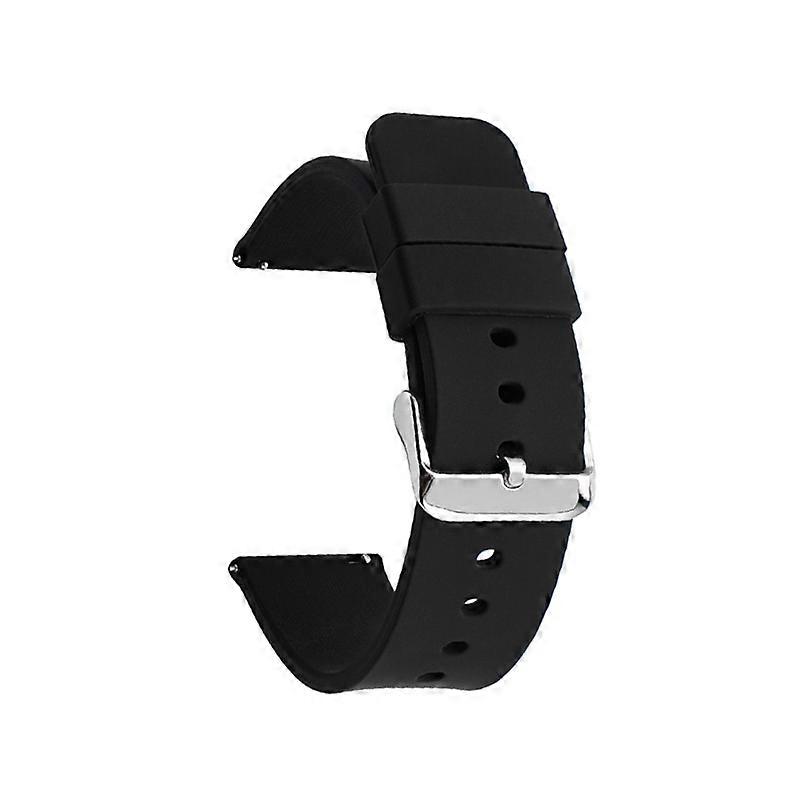 Högkvalitativt material: Bandet är tillverkat av silikonmaterial, vilket gör det mycket slitstarkt och pålitligt. Det ger en bekväm passform på din handled utan att risken att bandet deformeras.  Quick-release design: Klockarmbandet är även mycket enkelt att snabbt byta ut, utan att det krävs några extra verktyg. Universell anpassning: Kompatibel med flera olika klockmodeller. Du kan välja lämplig storlek att köpa enligt storleken på klockgränssnittet tack vare dess mångsidighet. Pin spänne design: Spännet är dessutom rostfritt samt mycket slitstarkt, i syfte att du enkelt ska kunna ändra storlek på remmen samt kunna använda klockan vid flera olika tillfällen utan oron att den ska falla av.   Specifikationer: Storlek: 11,1x8,1x1,4 cm Gränssnittsstorlek: 12/14/16/18/19/20/21/22/24 mm Material: Silikon   I paketet ingår: 1 x Klockarmband