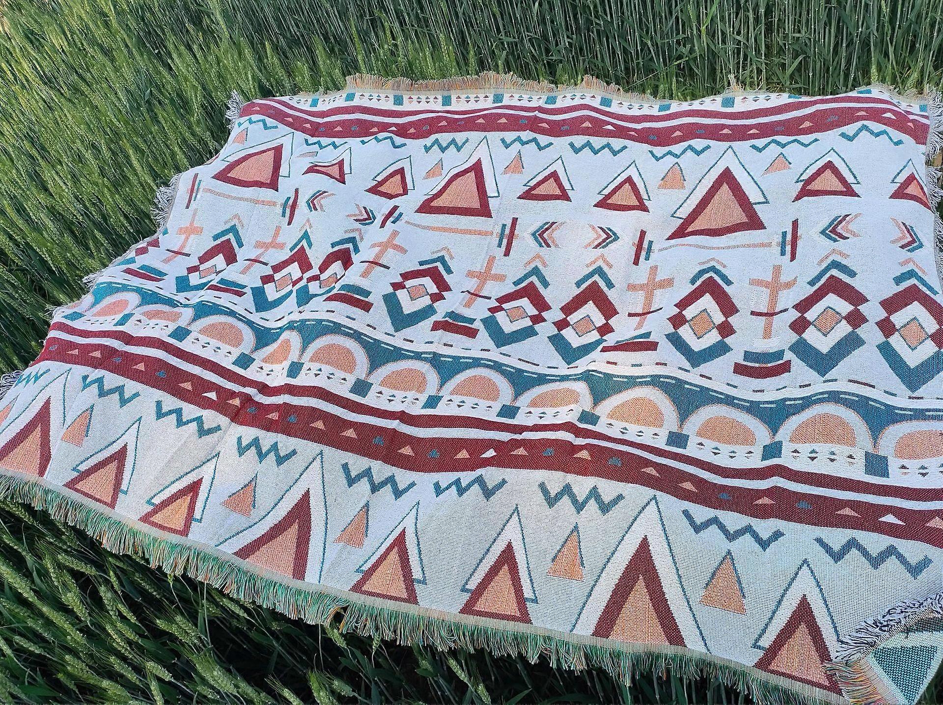 INS Abstract Art Tassel Throw Blankets Blue Sofa Cover Portrait Tapestry Nordic Blanket for Beds Home Outdoor Camping Picnic Mat
