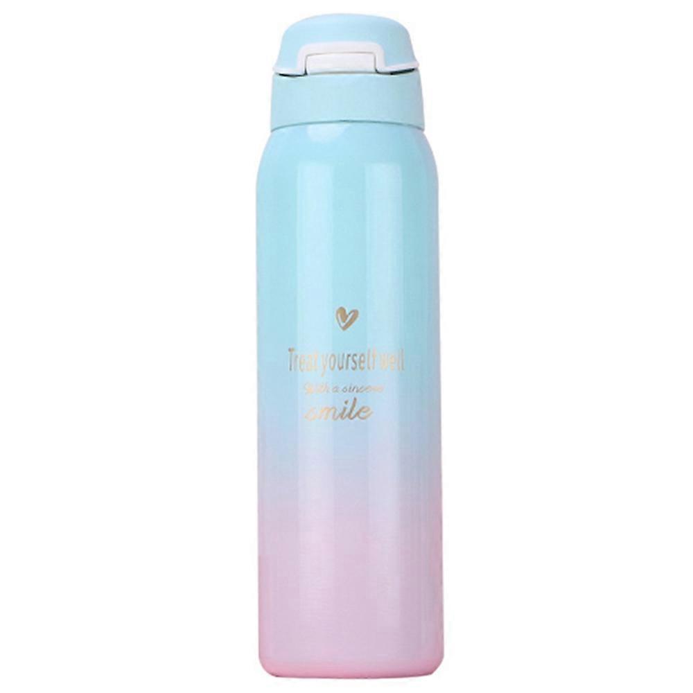 Insulated Thermals Milk&Coffee Cup Stainless Steel Straw Water Bottle Gradient Sports Vacuum Flask,Light Blue