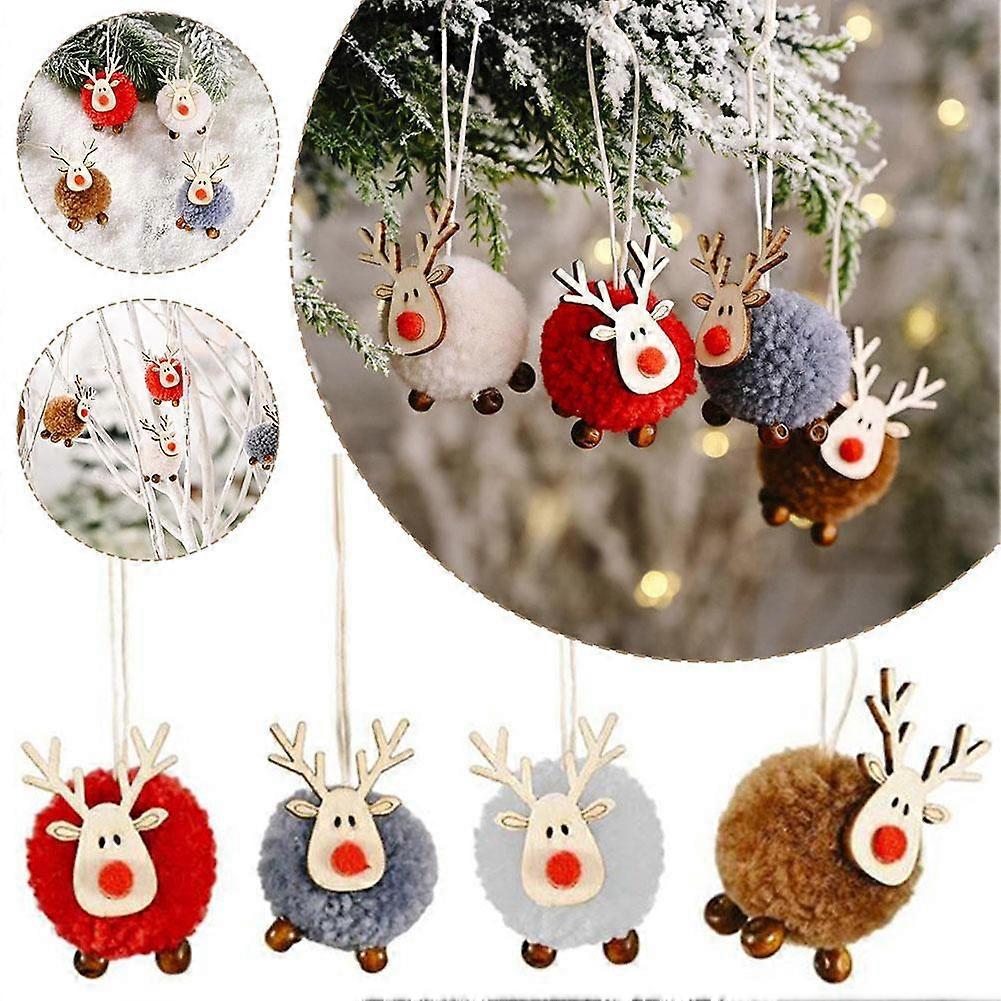 Christmas Elk Ornaments, Cute Christmas Tree Decorations Wooden Felt Reindeer