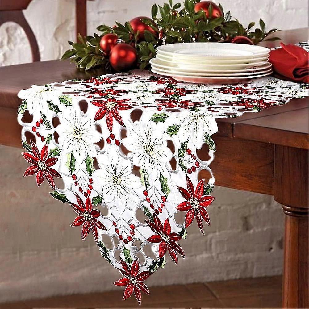 Christmas embroidery tablecloth, luxury for Christmas decorations, Christmas embroidery table runner tablecloth cutout Versatile napkin new polyester