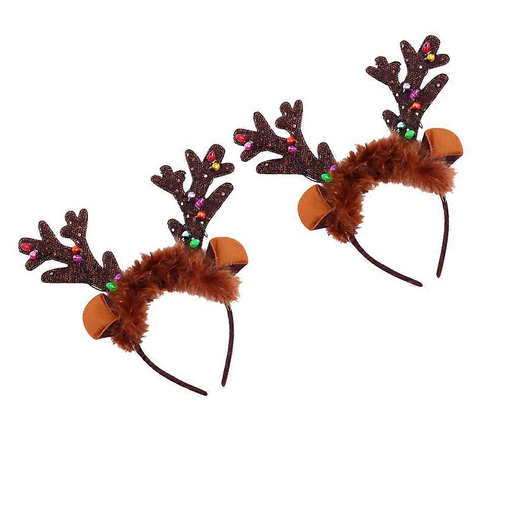 Xmas Luminous Headband for Decoration 6Pcs Coffee LED Antler Hair Hoop for Women