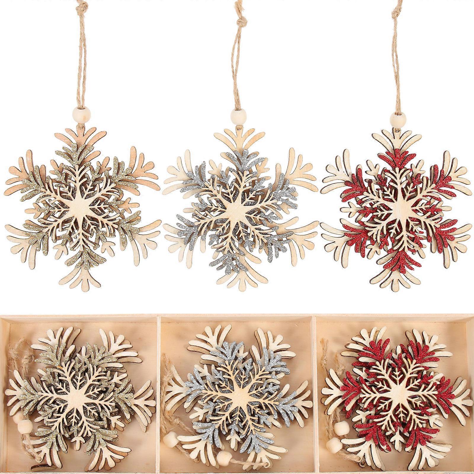 Christmas Ornament for Tree with Snowflake Pendants Wooden Decor Assorted Color Round Ball Adjustment Lanyard 6pcs