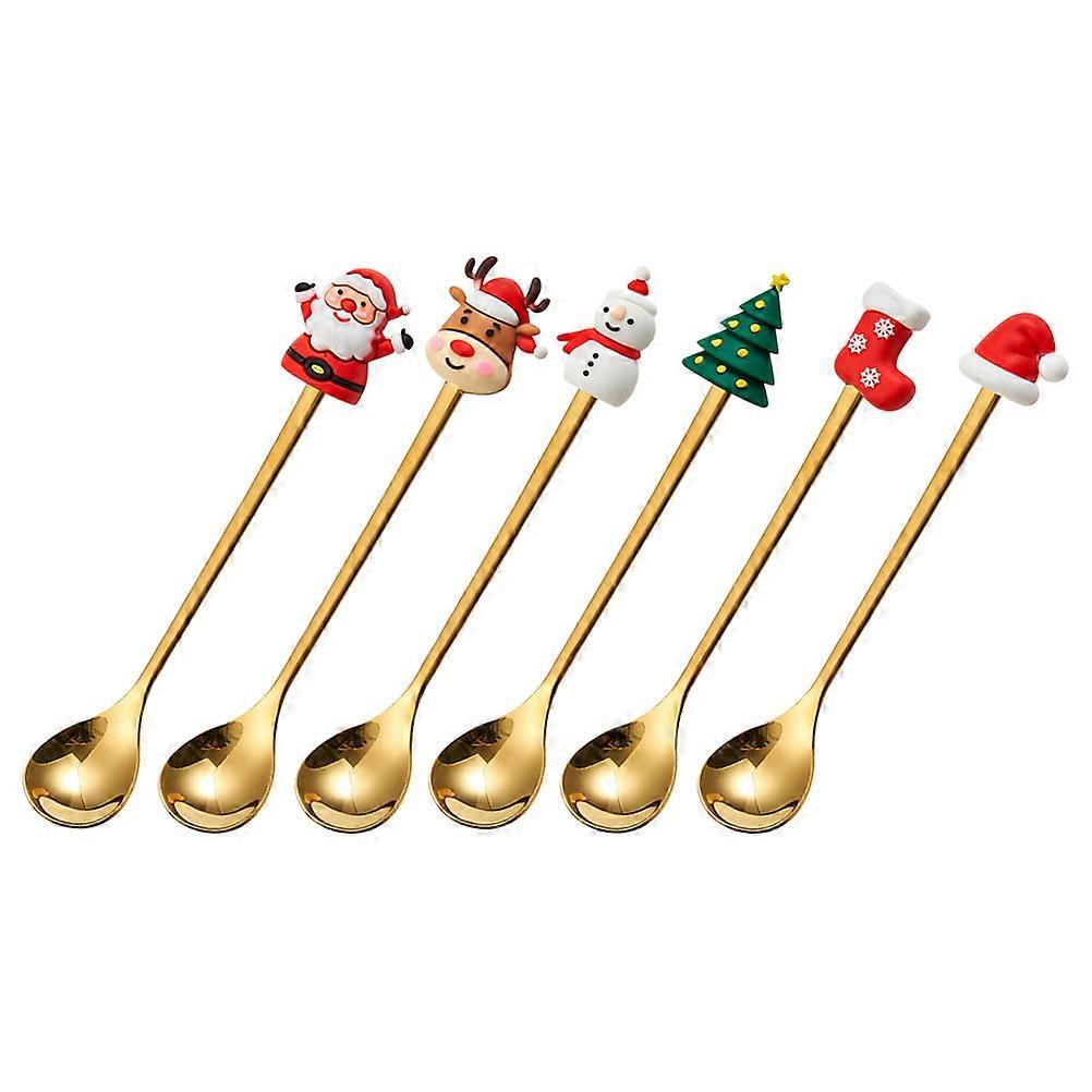 Christmas Stirring Spoons Set Of 6Pcs Stainless Steel For Beverage Mixing During Celebrations