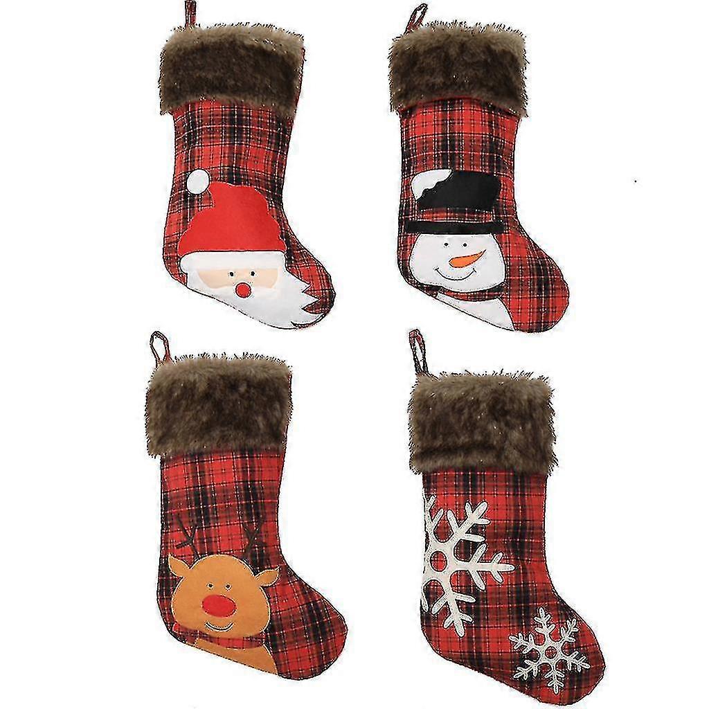 Christmas Stockings, Big Xmas Stockings, Plaid Style With Snow