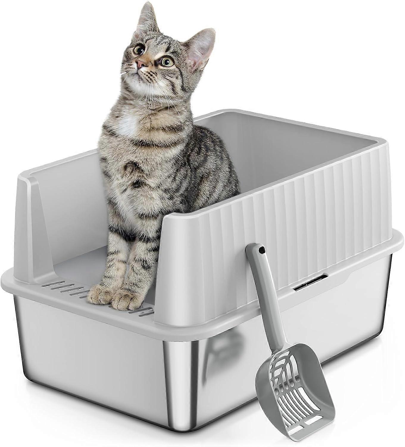 Stainless Steel Litter Box for Kittens - High Sided, Leak-Proof & Odor-Reducing, Easy to Clean