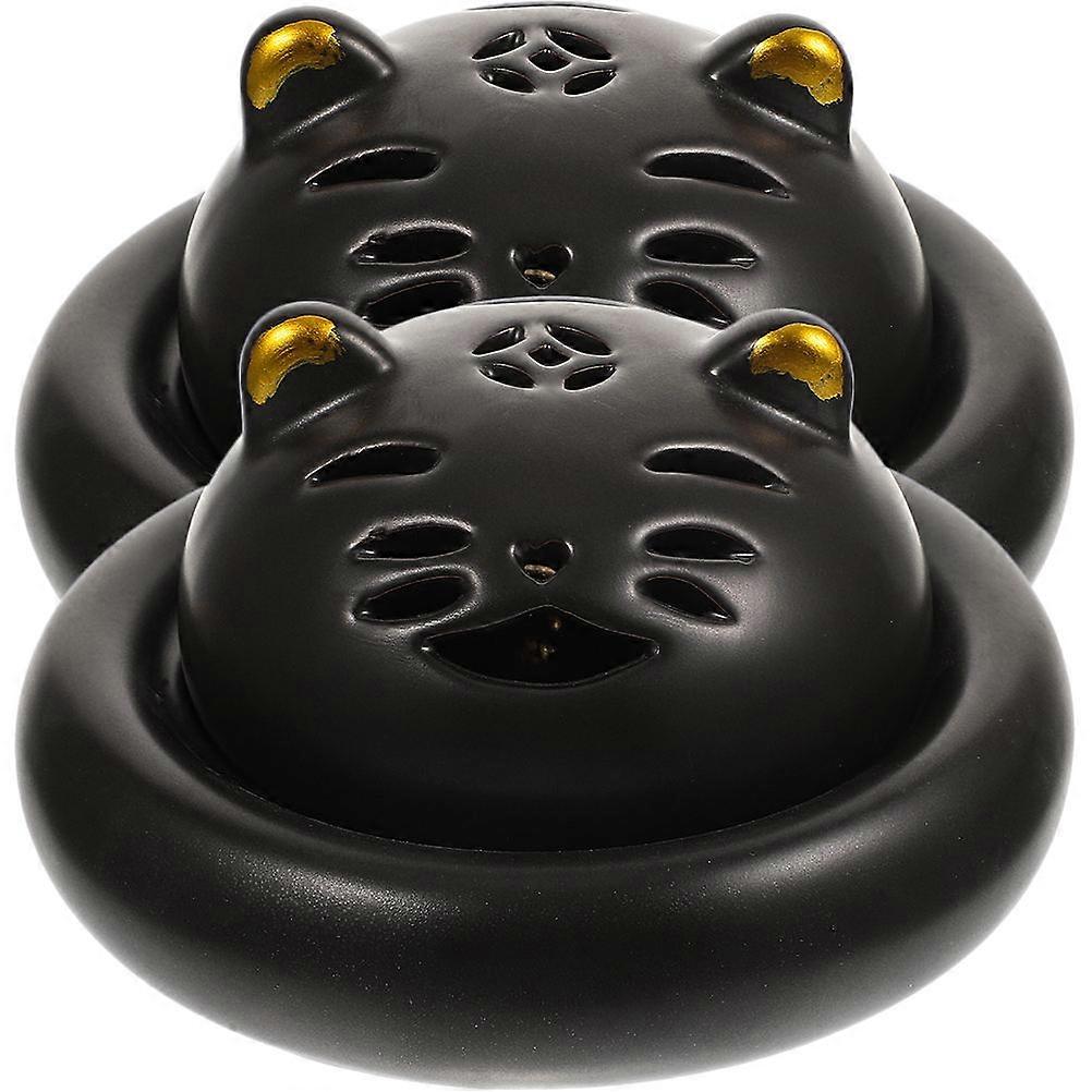 Ceramic Cat Incense Tray 2Pcs Adorable Design For Bedroom Mental Relaxation Black Aromatherapy