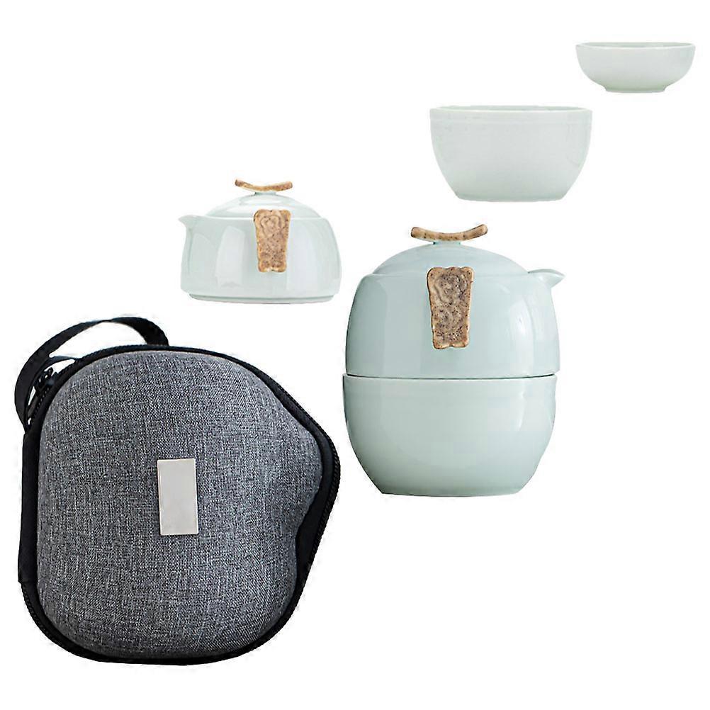 Ceramic Traveling Teaware Tea Pot Cup Set for Storage 2Sets Green Color