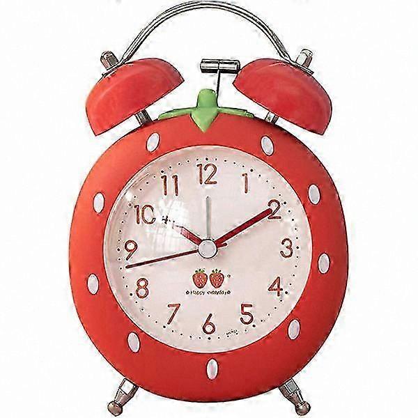 Cute Strawberry Shaped Clock Unique and adorable strawberry-shaped alarm clock, specially designed for children. It's not just a useful alarm clock, but also a nice decoration for kids' rooms, study rooms, or bedrooms. Perfect gift for birthdays, Christmas, graduation, and other occasions. Silent and Accurate Clock Battery-operated, non-ticking alarm clock uses a superior sweeping movement to ensure silent operation with a smooth second hand and accurate timekeeping. Helps children enjoy a more relaxing and deeper sleep. Super Loud Alarm The twin bells provide a loud ringing to help wake children in the morning. No snooze button, making it an effective analog alarm clock for kids who have difficulty waking up. Safe for Children This alarm clock is made of high-quality ABS material, safe for children. Use this bedside clock instead of a mobile phone alarm, reducing screen exposure and offering peace of mind. Soft Night Light Soft natural backlight makes it easy to read the time at night. Simply press the night light button on the back of the clock so children can check the time without straining their eyes.
