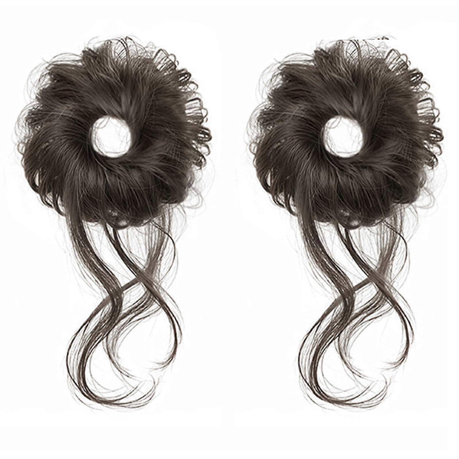 Kinder Synthetic Fiber Hairpiece Messy Buns Elastic Hair Extension MultiUse for Kids' Parties and Daily Wear Brown Black