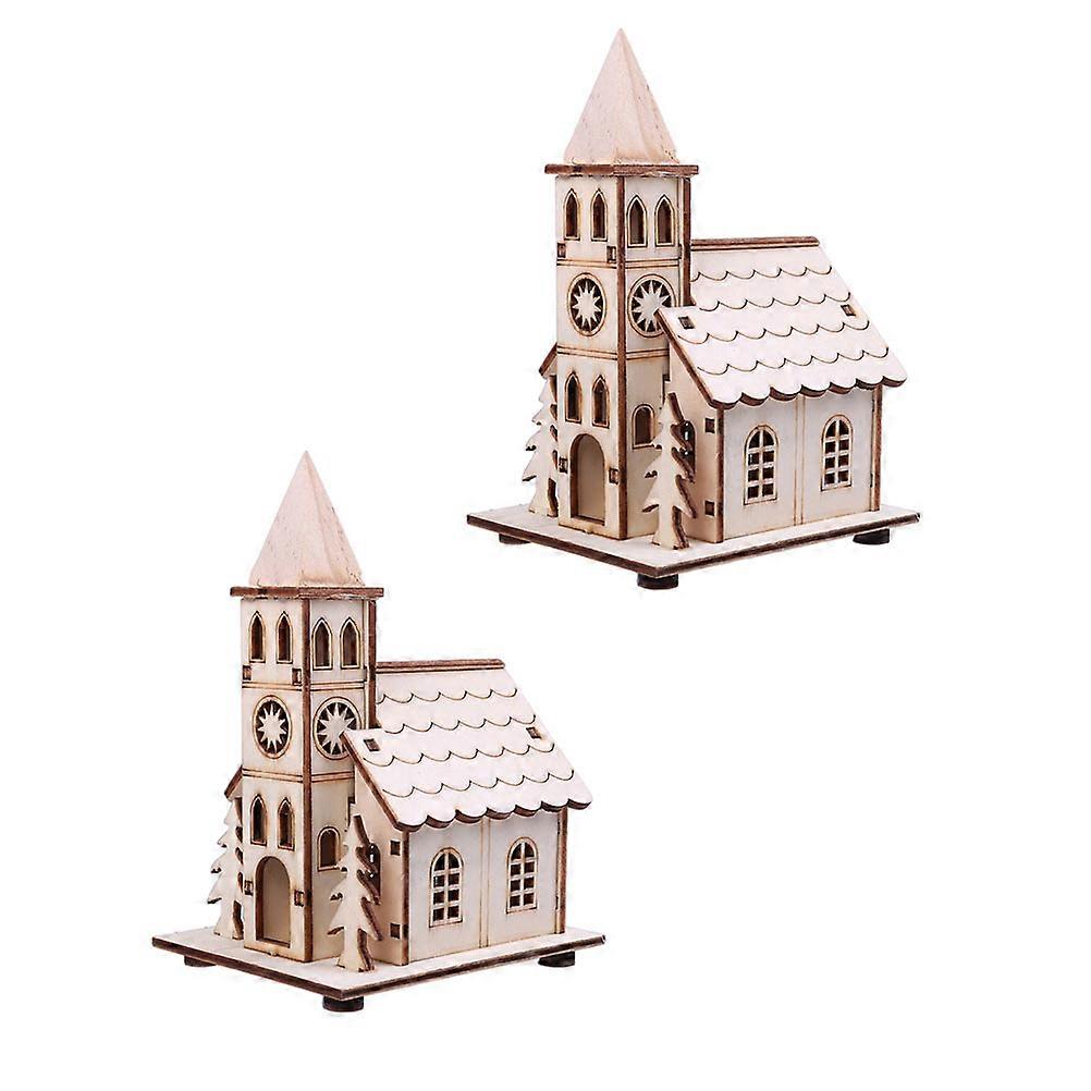 Churches For Decoration Church Modeling Adornment Luminous Xmas Ornament Christmas Glowing Decor 2Pcs
