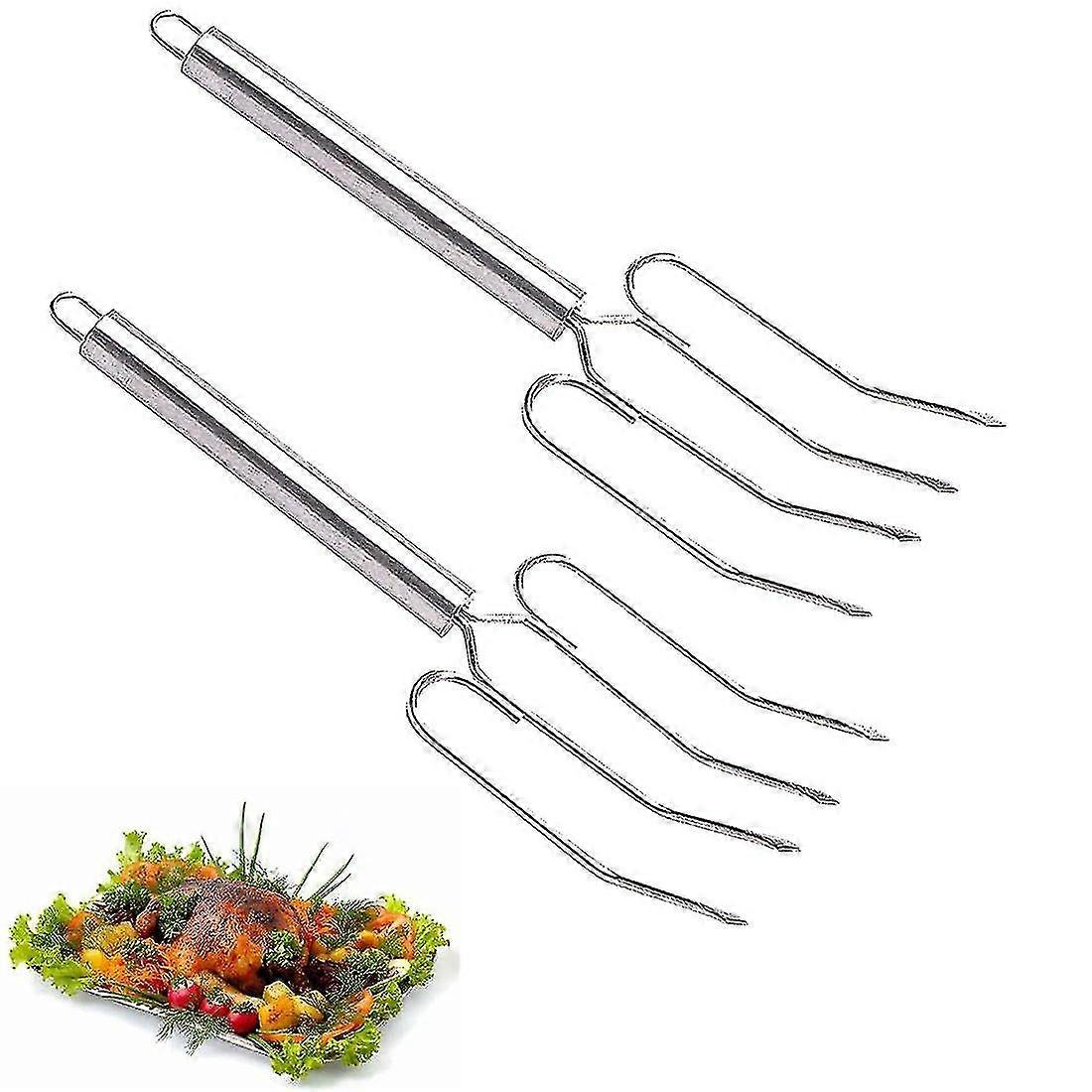 Stainless Steel Meat Lifting Forks (set Of 2), Silver