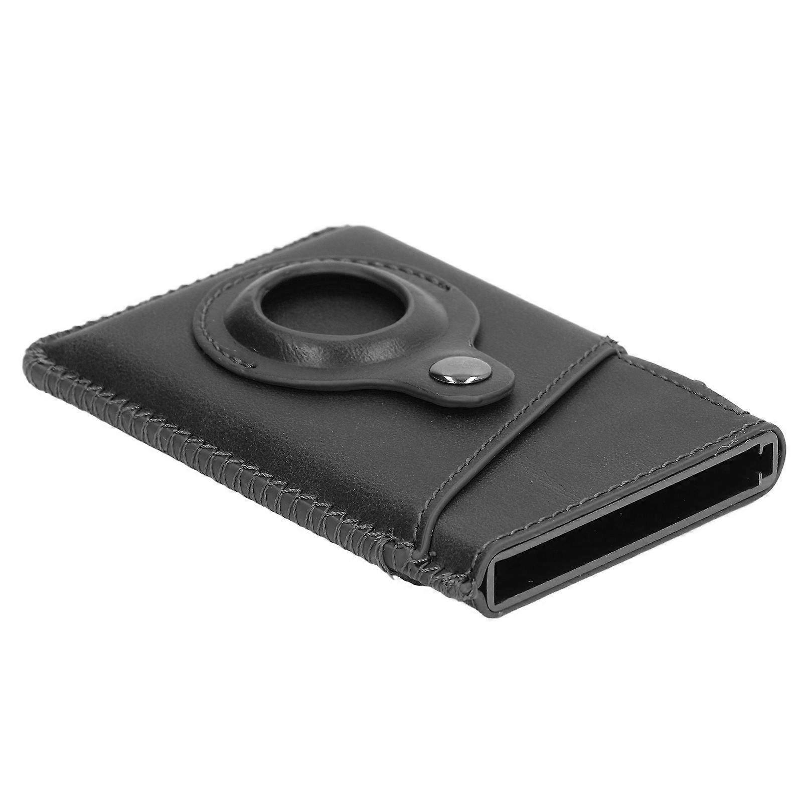Card Wallet PU Slim Minimalist RFID Blocking Aluminum Alloy Multifunction Small Locator Wallet for Men Gifts Black