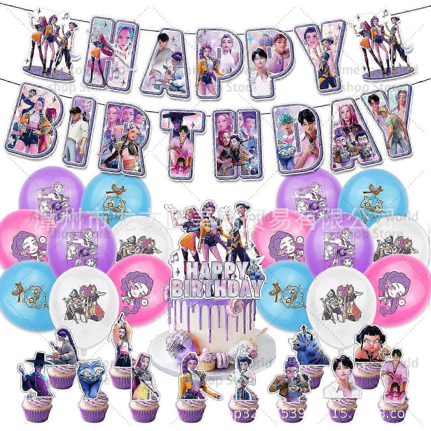 KPop devil Hunters Birthday Party Set dukar tallrikar koppar ballonger Cake Topper för barn