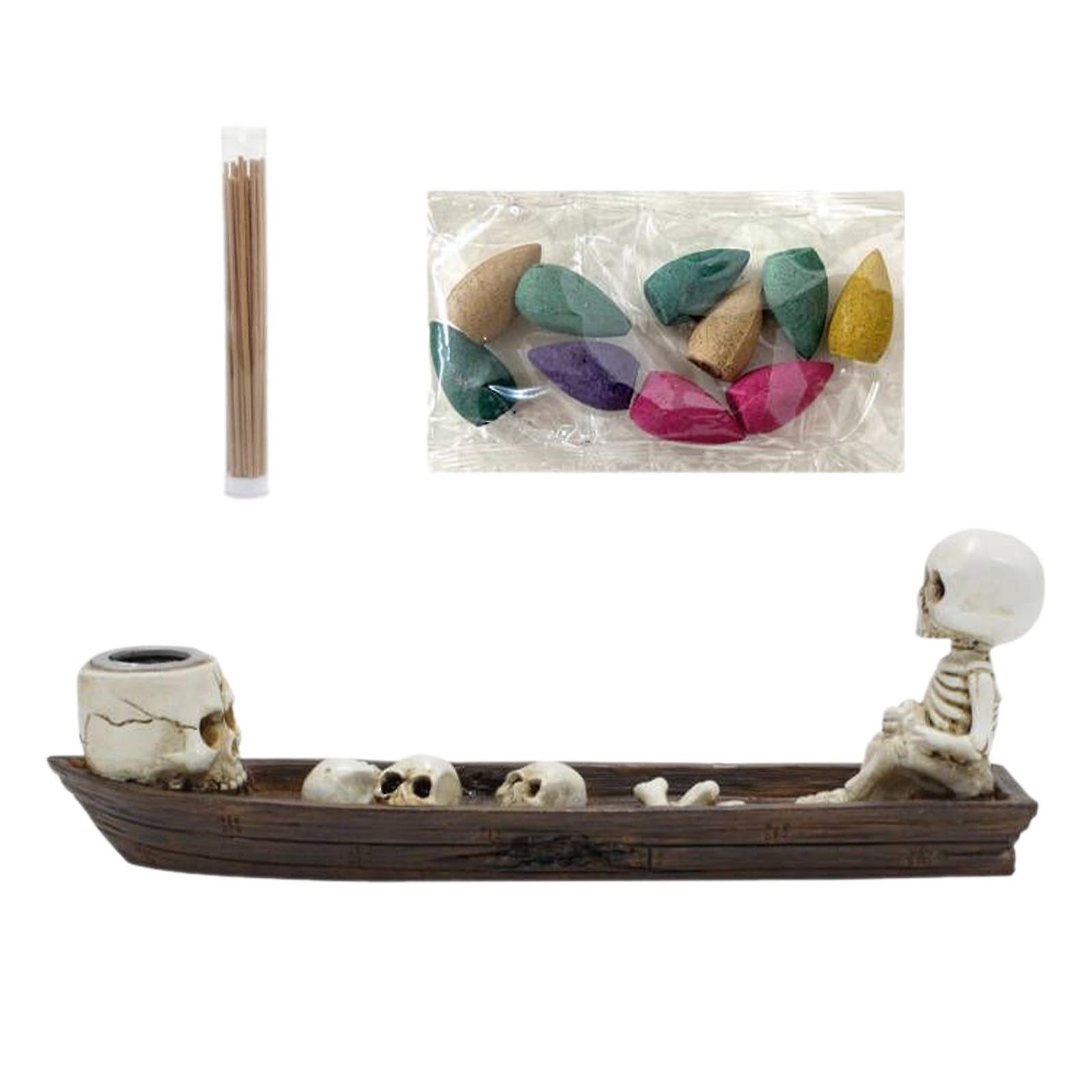 Skull Ship Incense Burner Resin Incense Cone Holder for Table Cabinet Office