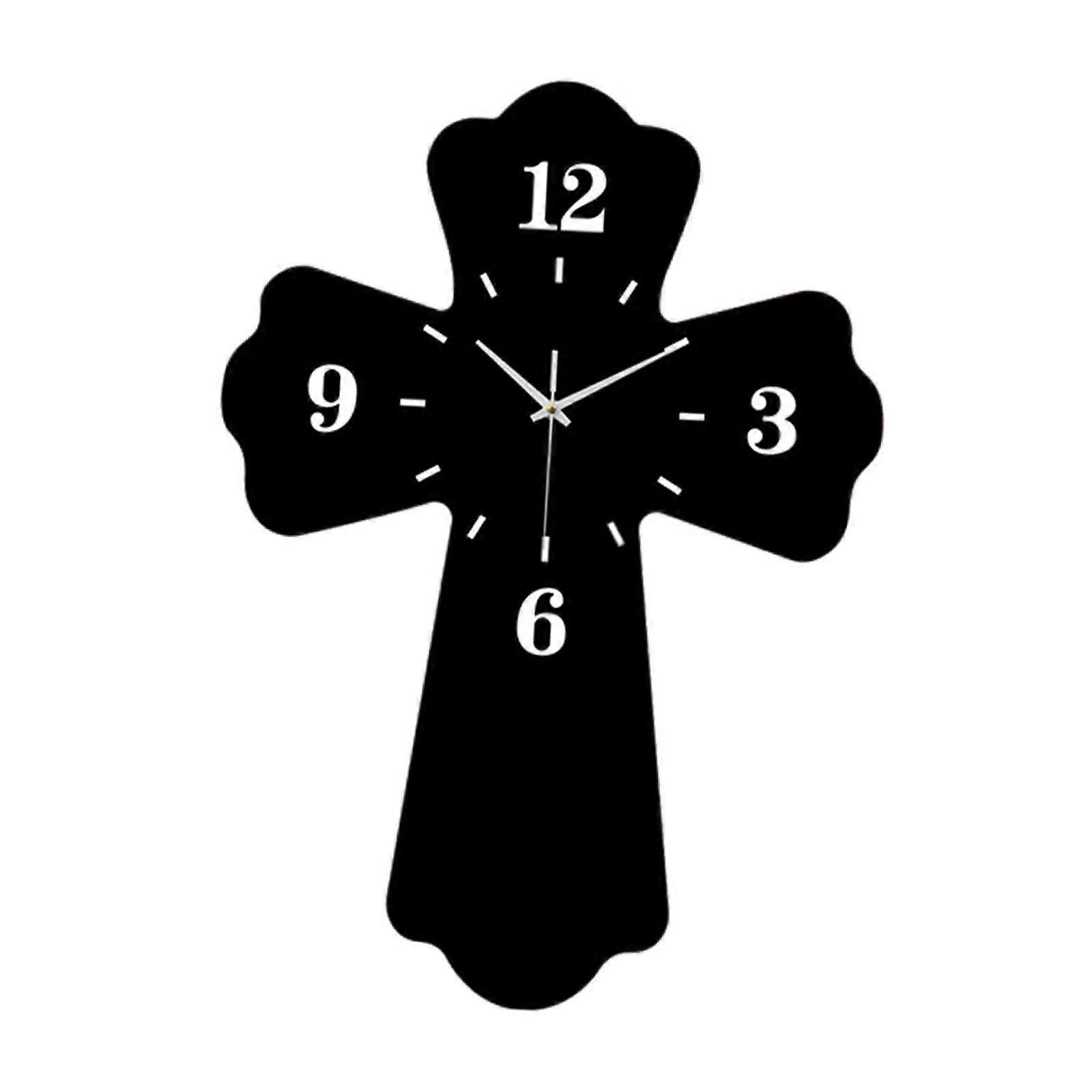 Cross Shaped Wall Clock Wall Hanging Digital Clock for Shop Dining Room Living Room Black