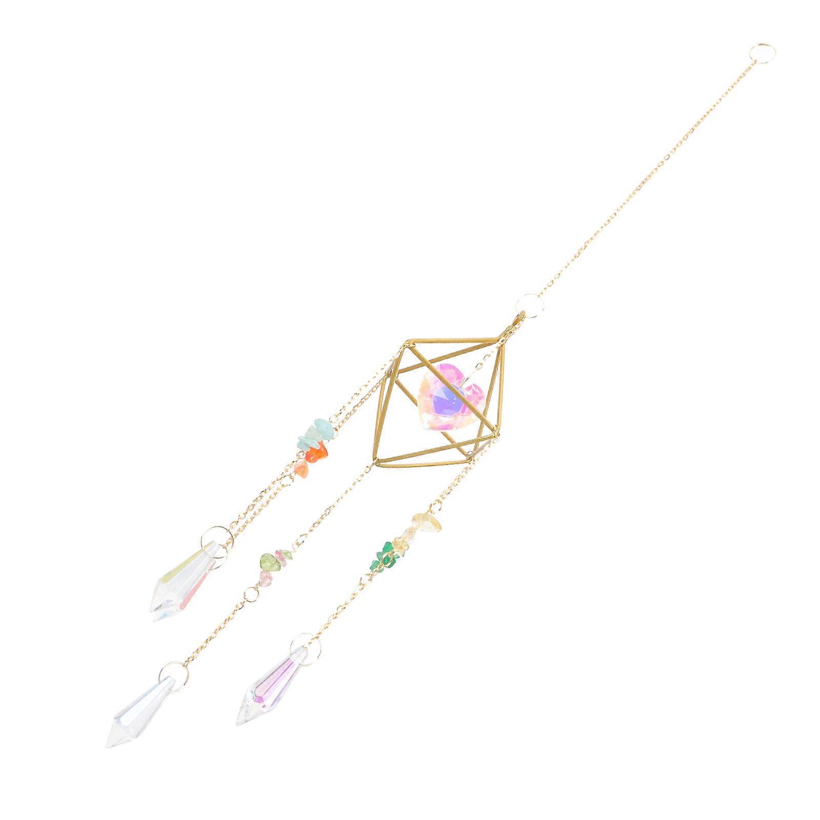 Crystal Hanging Ornament 2Pcs Delicate Design For Outdoor Yard And Home Decoration Pink Color 40x5cm