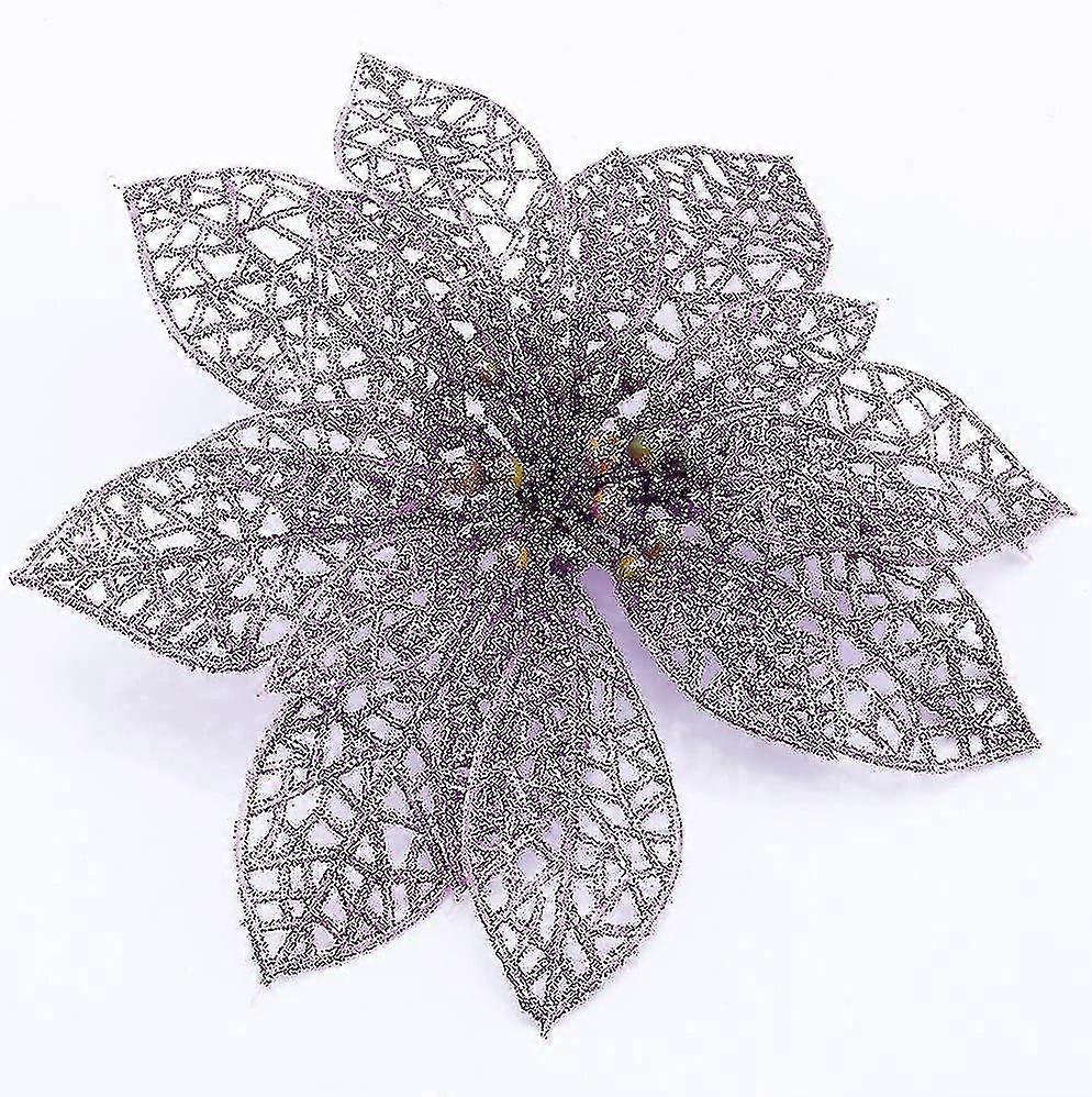 Artificial Glittering Poinsettias, 20-piece Set, 13cm, Easy to Assemble and Shatterproof