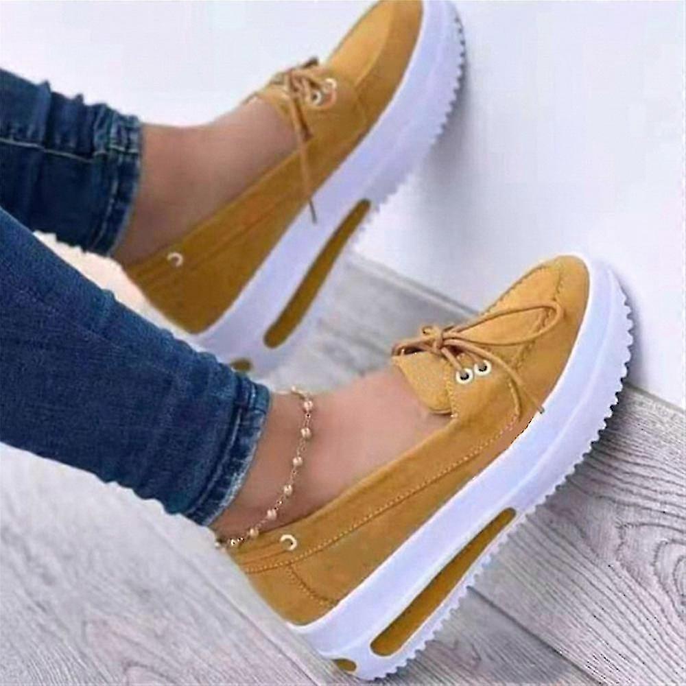 Woman Wedge Platform Sneakers Tieup Slipon Flat Shoes For Daily Casual-YuJia
