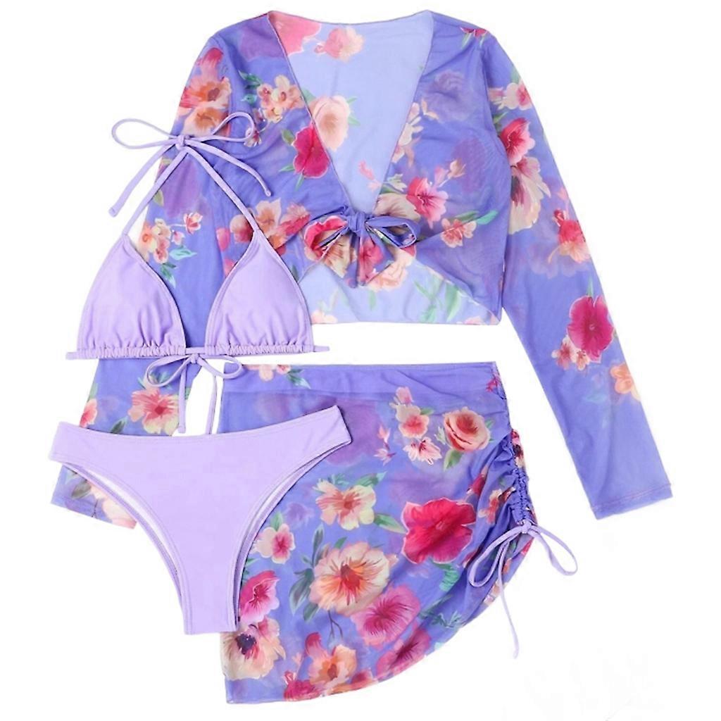 Features: brand new and high quality Womens halter bikinis set is-made of high-quality 82% polyester-fiber (-polyester) & -12%-spandex materials, breathable and comfortable to wear. 4 piece swimsuits, adjustable halter bikinis bra and briefs, long sleeves crop top and beach-skirt. Floral printed swimsuits are suitable for tropical vacations, swimming pool, beach-party, swimming pool, hawaii and-honeymoon. Fashion and sexy bathing suits, wearing a-mysterious figure, bathing suit is-very eye-catching. Best holiday gifts for mom, wife, girlfriend or women you-love. Specifications: Material: 82% Polyester-Fiber (-polyester) & -12%-Spandex Color: Rose Red/Orange/Black-/Purple Size: for-S/for-M/for-L/XL(Chinese size ,follow the size chart to select please) Size:S Bust:72-80cm(28.35-31.50inch) Waist:60-66cm(23.62-25.98inch) Hips:78-85cm(30.71-33.46inch) Size:M Bust:80-83cm(31.50-32.68inch) Waist:64-70cm(25.20-27.56inch) Hips:85-91cm(33.46-35.83inch) Size:L Bust:88-95cm(34.65-37.40inch) Waist:68-74cm(26.77-29.13inch) Hips:91-97cm(35.83-38.19inch) Size:XL Bust:95-103cm(37.40-40.55inch) Waist:72-78cm(28.35-30.71inch) Hips:97-105cm(38.19-41.34inch) Note: Please allow 1-2cm errors due to manual measurement. Due to the-difference betweeen different monitors,the pic-may not reflect the actual color of the item. Package includes: 4 Pieces/Set Women Swimsuits
