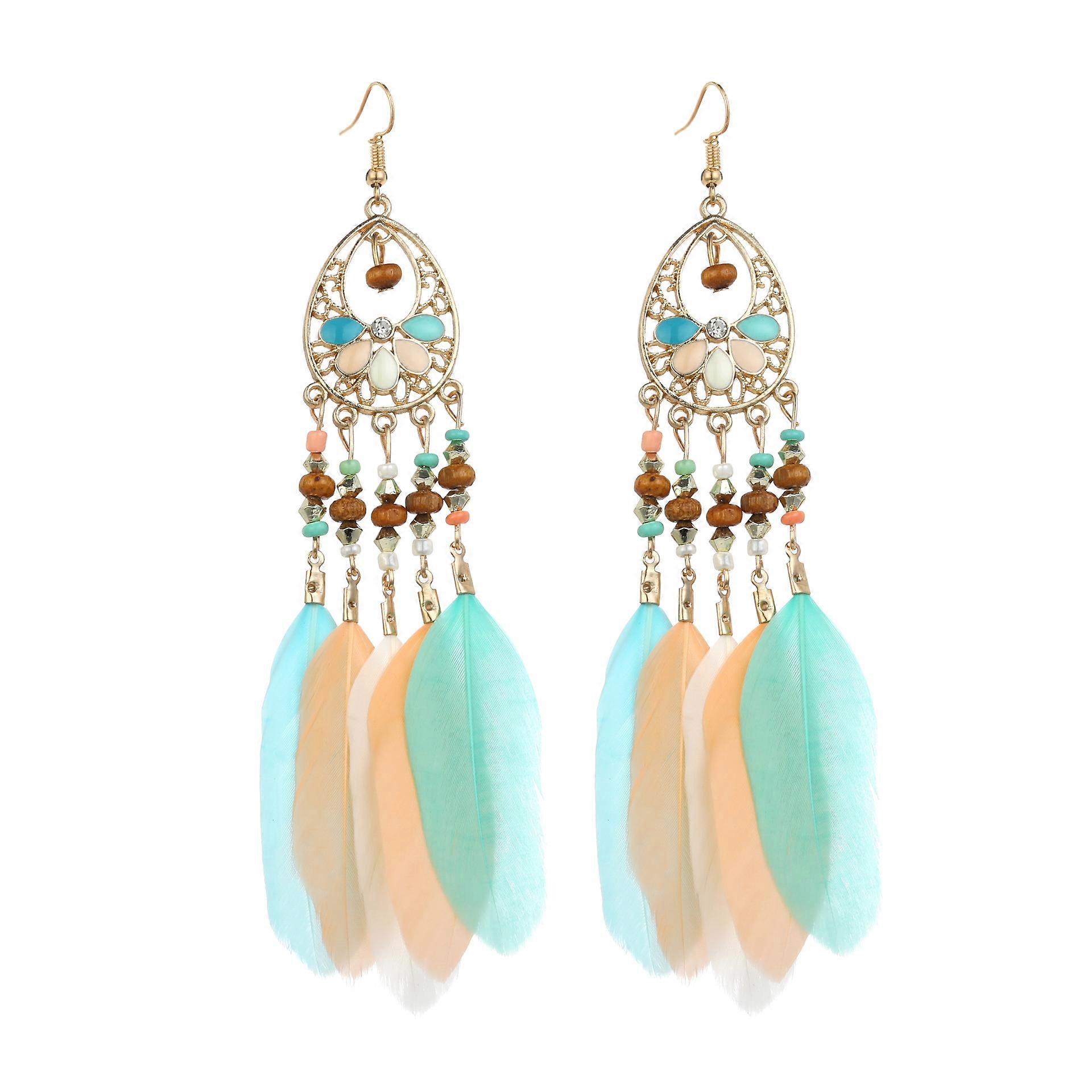 Women Faux Feather Earrings Bohemian Fringe Tassel Long Drop Dangle Earrings Set with Dream Catcher Design for Women Girls
