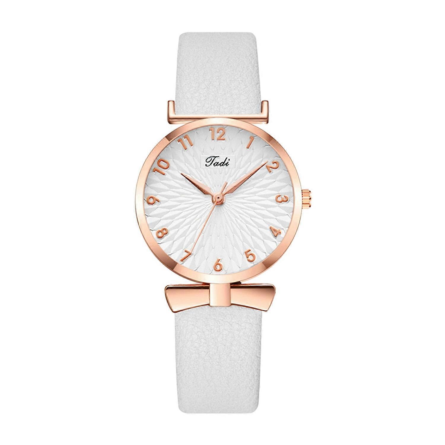 Women Watch Quartz Movement Round Dial Adjustable Faux Leather Strap Bow Decor Time-checking High